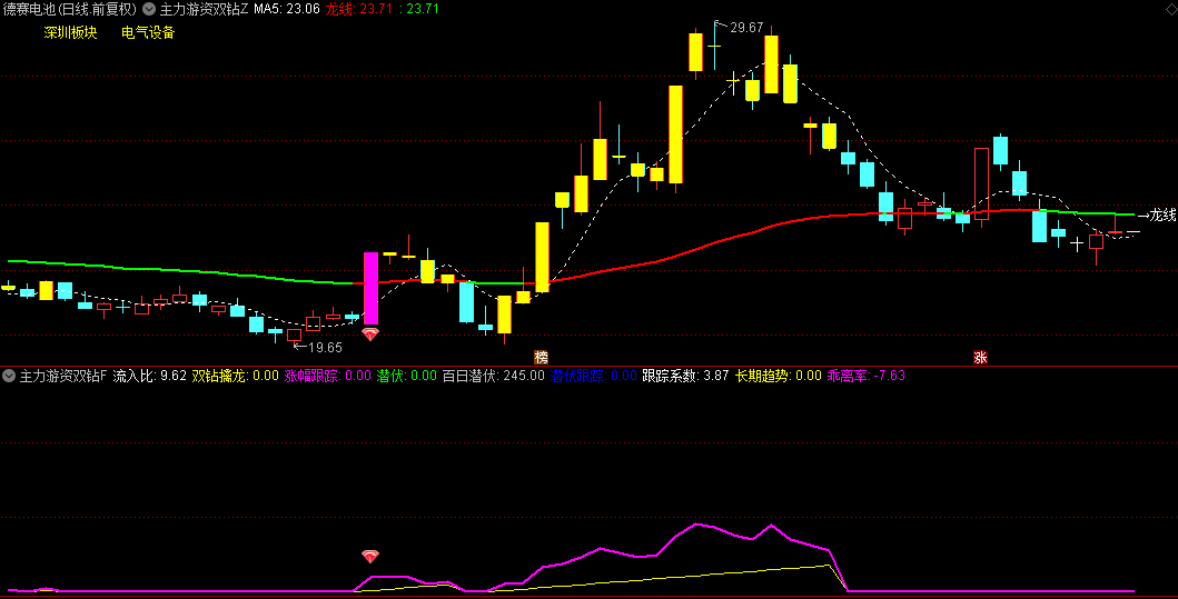 〖主力游资双钻〗主图/副图指标 双钻位居龙线之上是前提 双钻共振是买点 通达信 源码