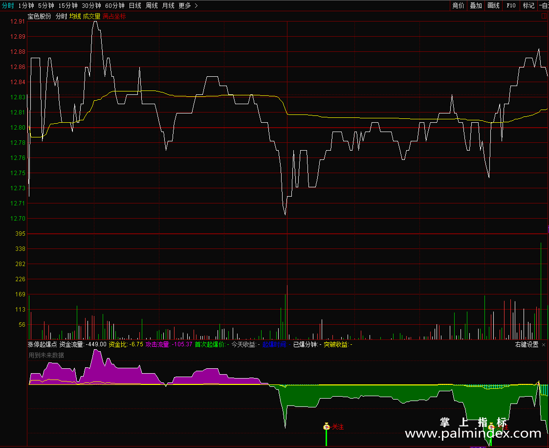 DRAWICON(已爆分钟>=2,首次起爆量/2,13);{出现红球,至少已经确认2分钟了};