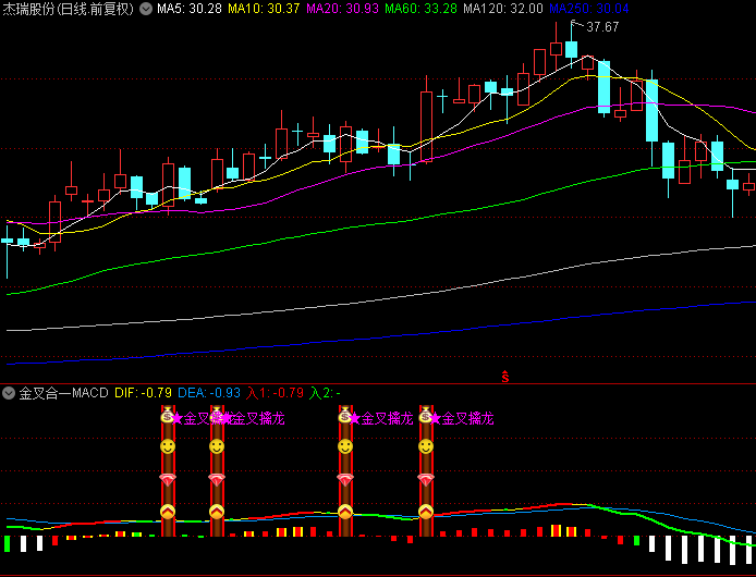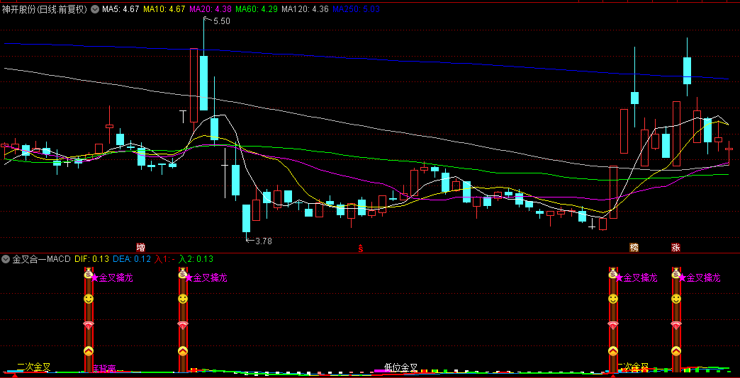 【金叉合一MACD】副图指标,金叉四合一擒龙+MACD看透主力更新版,合为一体,图形清晰,效果良好!
