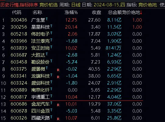 〖竞价绝地〗副图排序指标,不能回测,竞价绝地排序自带风控,不会出太高标的票!