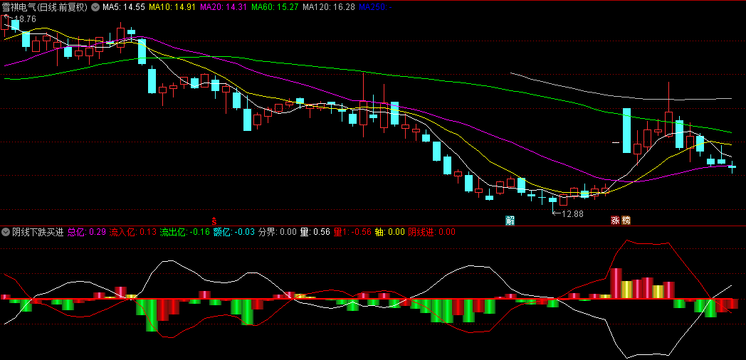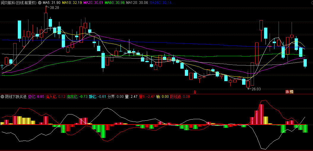 【阴线下跌买进】副图指标,非常实用的指标,在阴线时买入,等待反转的开始!