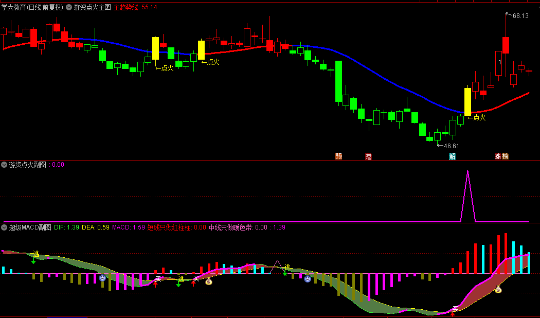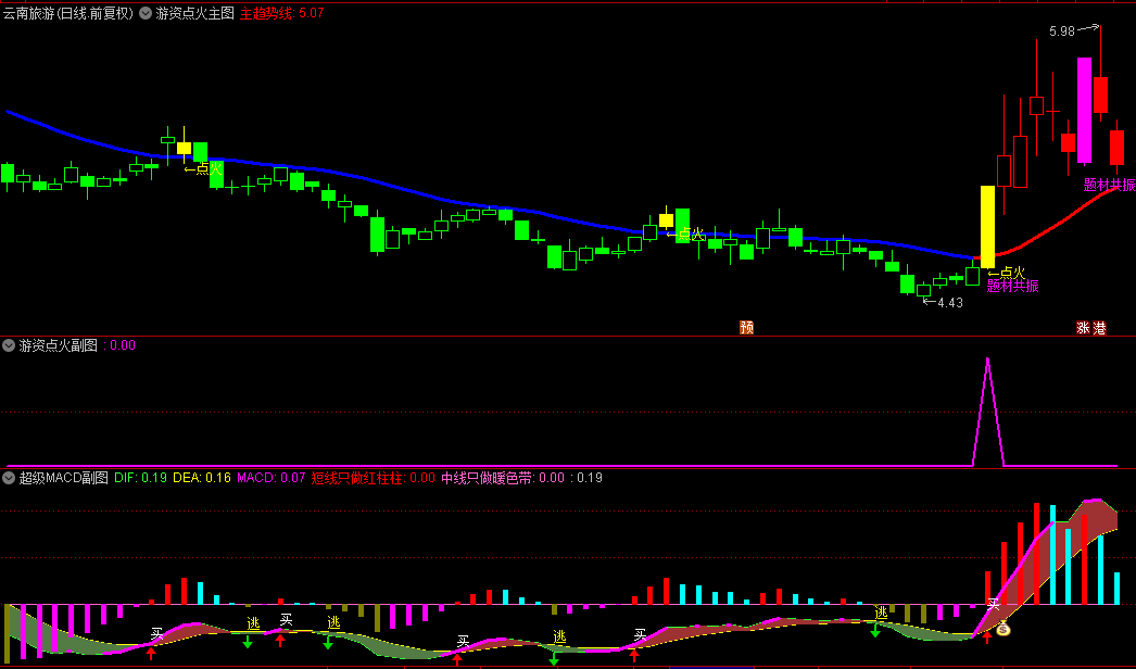 “游资点火起爆战法”是一个综合性的交易系统,需要结合多个指标和信号进行综合判断。