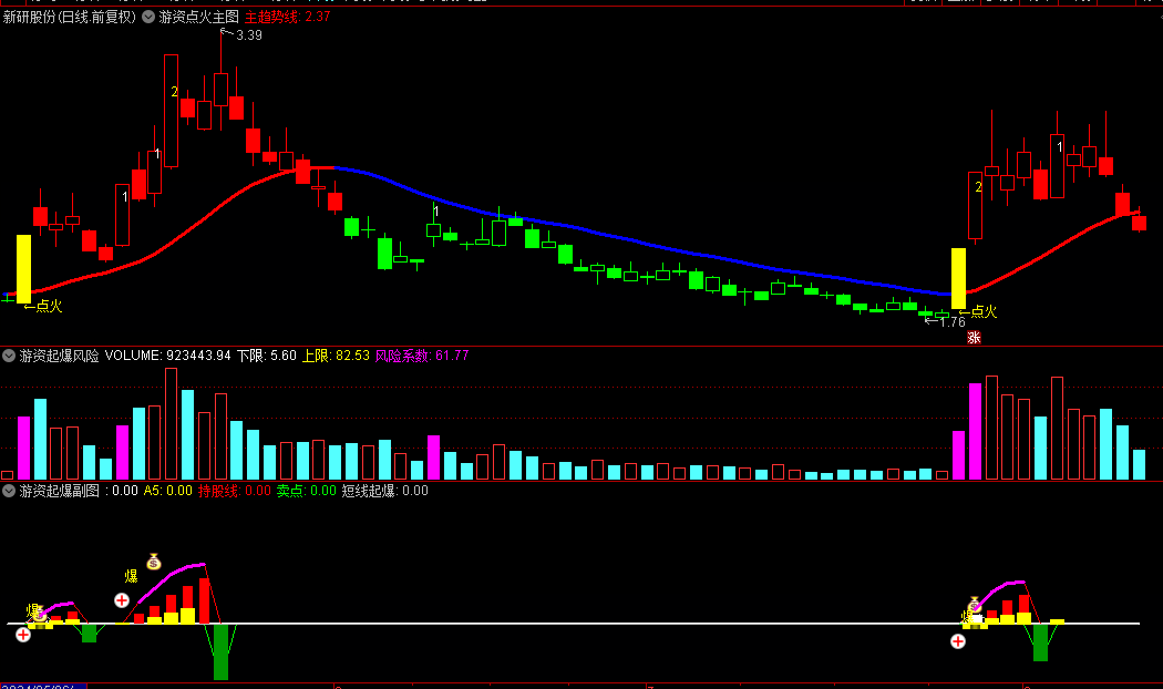 紫色量柱:当风险系数副图中出现紫色量柱时,应重点关注市场变化,可能是风险增加的信号。