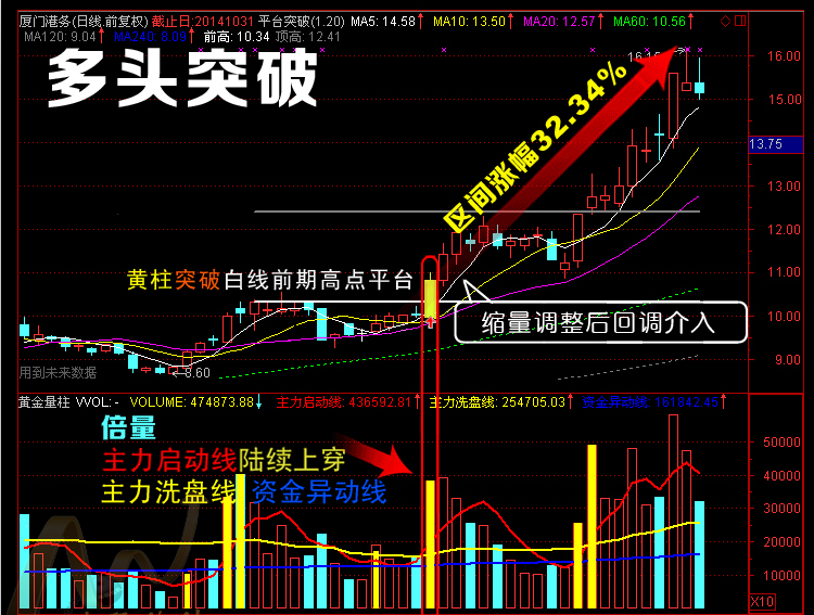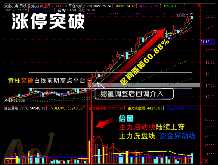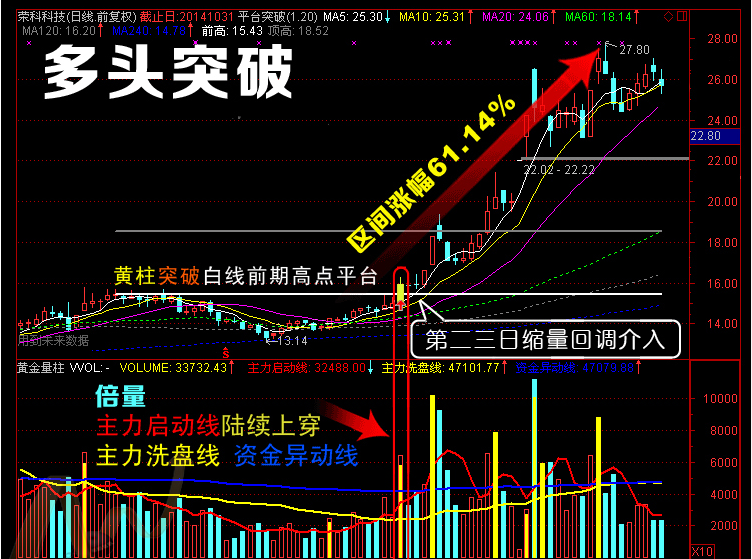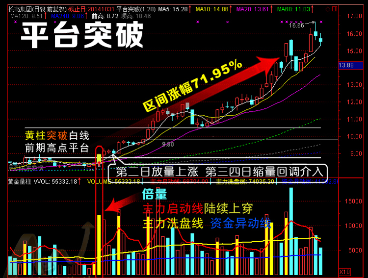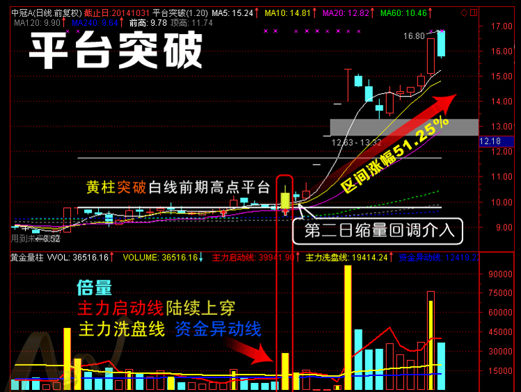 平台突破战法在实战中出现频率高、准确率高、资金利用率高、涨幅大。所以,这里介绍给大家的是成功率高、非常稳健有效的买点操作方法—平台突破战法。