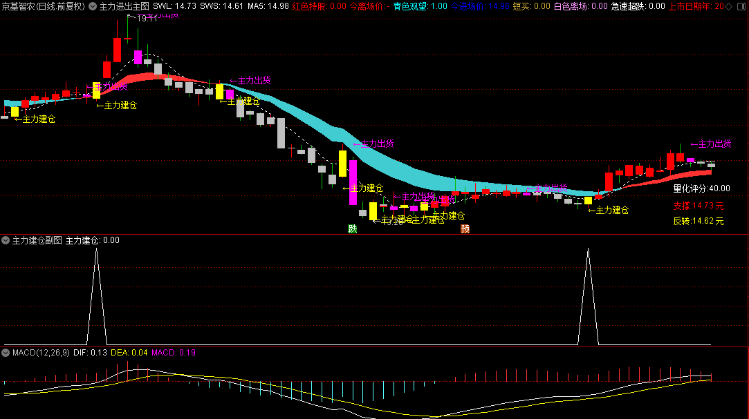 指标简介:主力资金进场擒牛指标体现了主力建仓-持有-主力出场的过程信号;