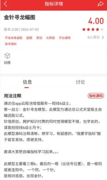 短线6战士,第一战士“金针寻龙”。这是增值功能,但是拿到金针寻龙源码可以使用金针寻龙选股了。