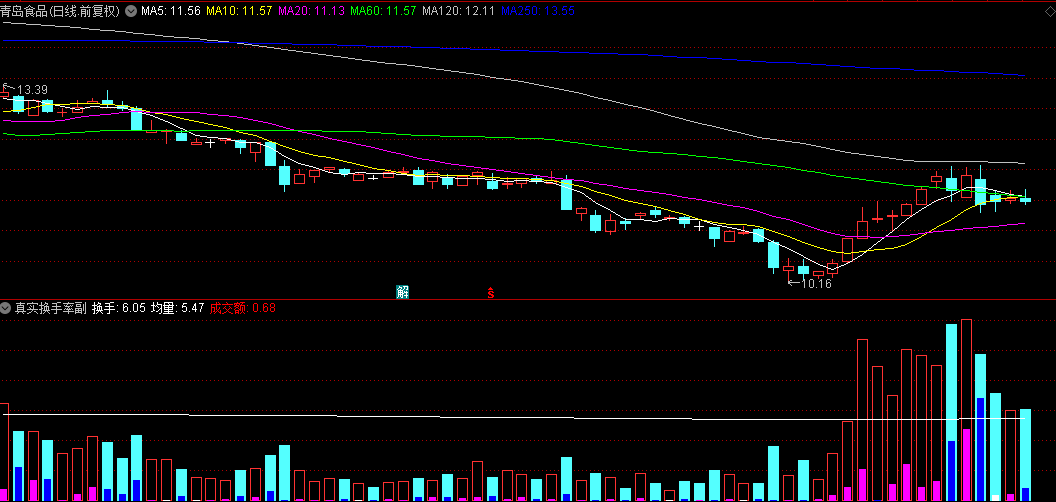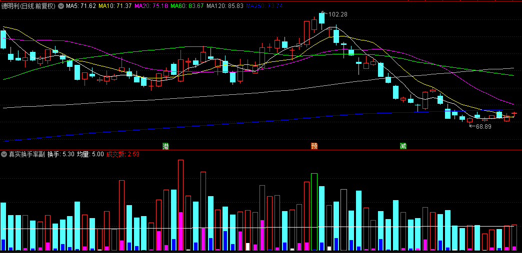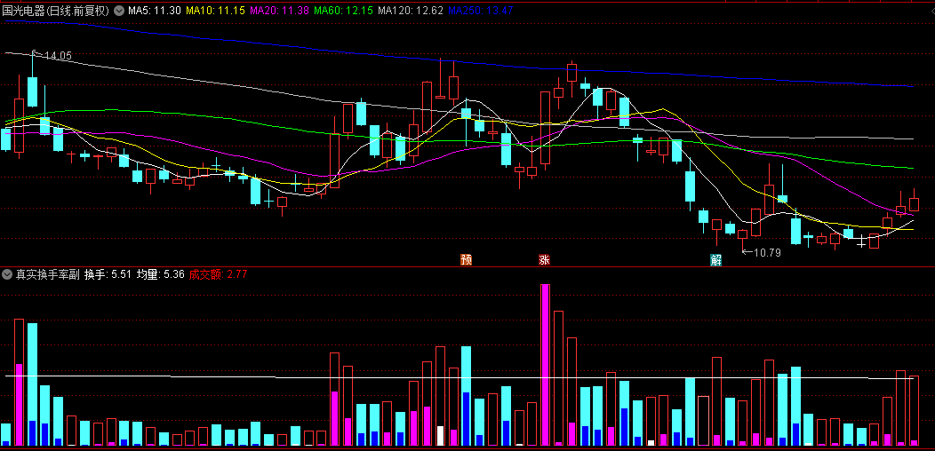 指标去掉了锁死的大股东的股票,再计算的换手率。然后结合获利盘和套牢盘然后为成交量打色。