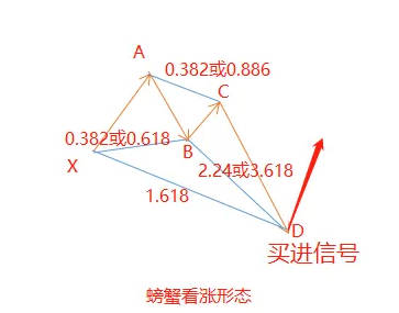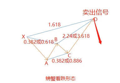 螃蟹形态因为形状类似螃蟹而得名,可以利用比例关系提前预测出价格反转位置,被称为是最精准的形态。它是蝴蝶形态的变形,跟蝴蝶形态相比,螃蟹形态的宽度更大。