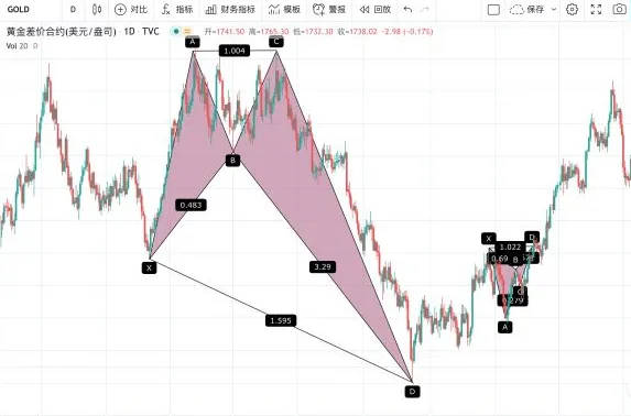 A-B价格腿:随后,价格从A点回撤到B点,回撤的幅度通常是X-A价格腿所涵盖距离的38.2%至61.8%。