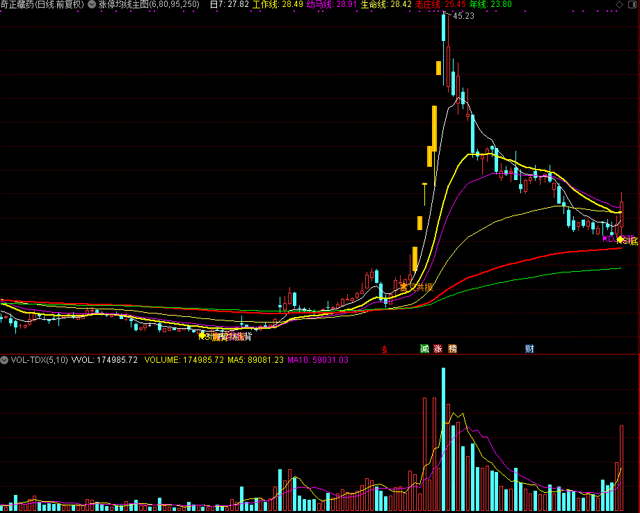 老庄线:EMA(CLOSE,140),COLORRED,LINETHICK2;