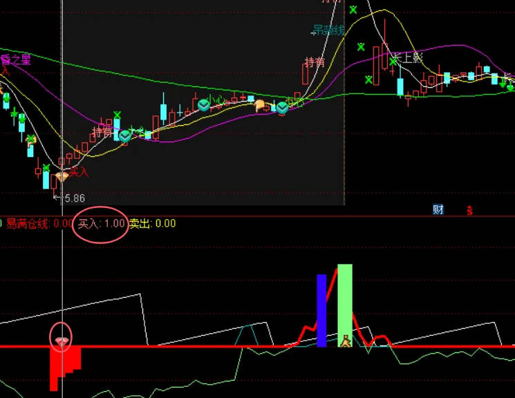 死鱼线消失在易满仓线里,这时可以考虑买入操作,故名“易满仓”。