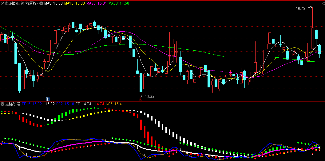 此指标的特色之处是能够把波段趋势走强的那个阶段用红色柱子给明确标记出来,一看便知强弱!该指标不含未来函数!