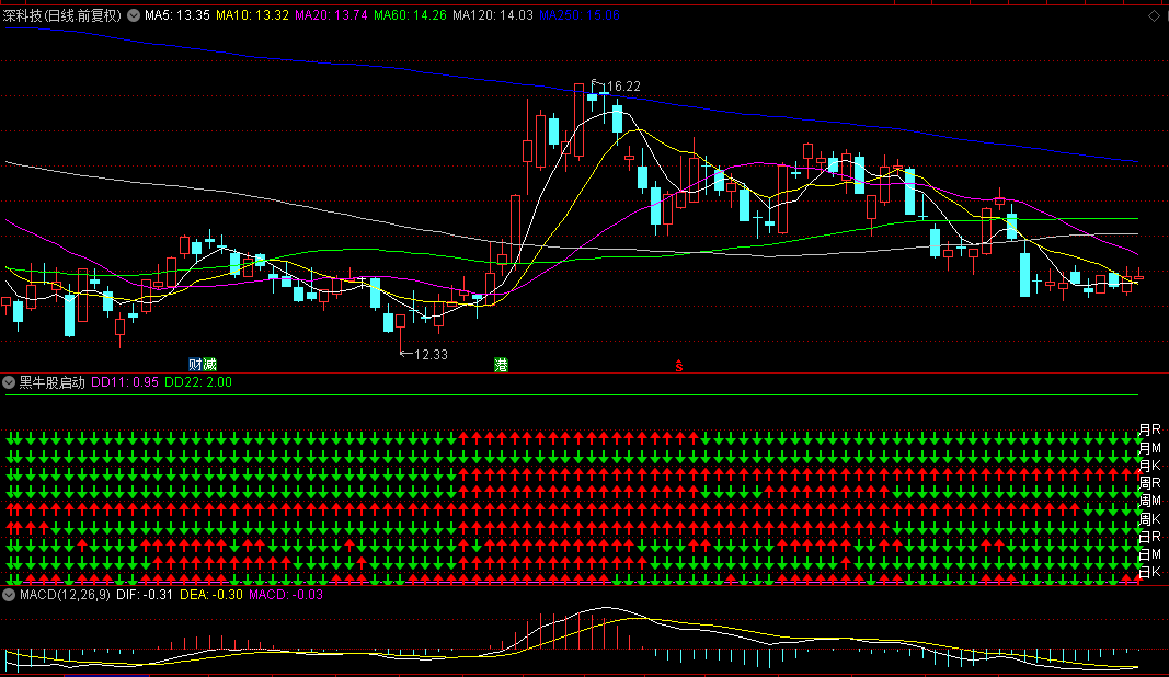 黑牛股启动指标集合了KDJ、MACD、RSI三大经典,通过不同周期的对比,来发现具备上涨潜质的黑牛股!!