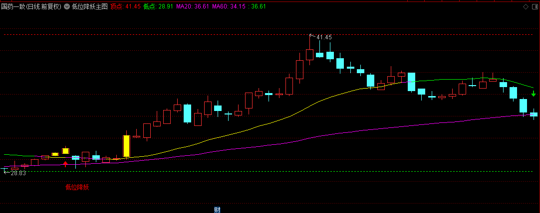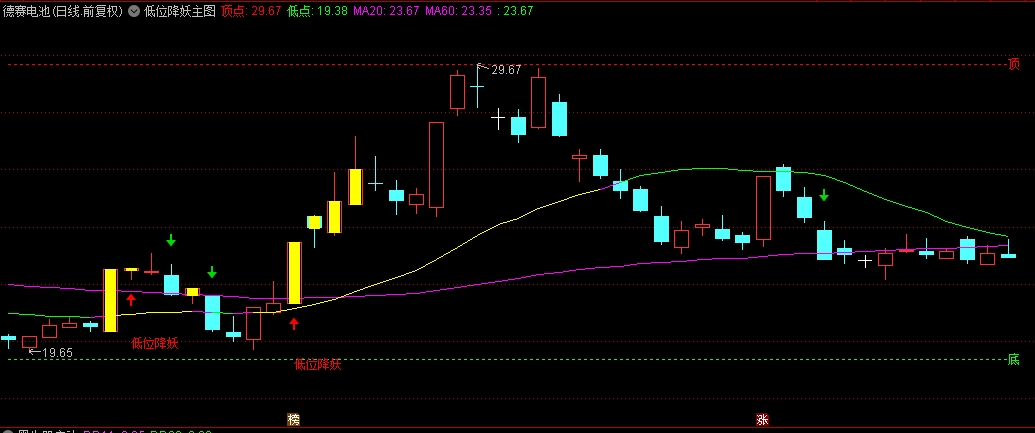 本套指标包含主图指标和选股指标,选股指标选出来的是出现“低位降妖”信号的位置;