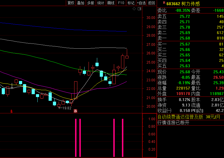 通达信【游资主升介入】副图/选股指标,出现红色抄底信号,参考线低于26时,可考虑轻仓试探