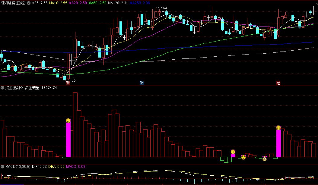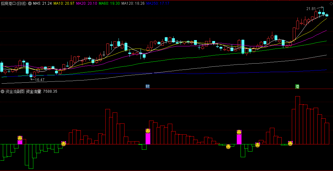 “笑脸”信号表示资金第一次且在上涨趋势中出现:当市场已经处于上涨趋势中,并且出现“笑脸”信号时,这表示资金在此时第一次流入市场。这一信号可能进一步强化上涨趋势,为投资者提供明确的买入信号。