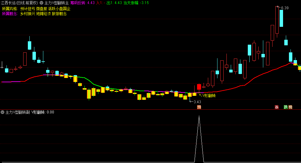 主力V型翻转主图副图和选股 V型突破擒龙信号准