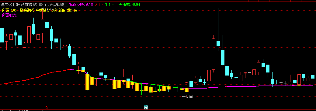 V型反转突破指标说明:以筹码指标为基础,当满足90%的筹码集中度>昨日90%的筹码集中度时画红色实线,当价格往上突破筹码线时,发出筹码V形反转信号。