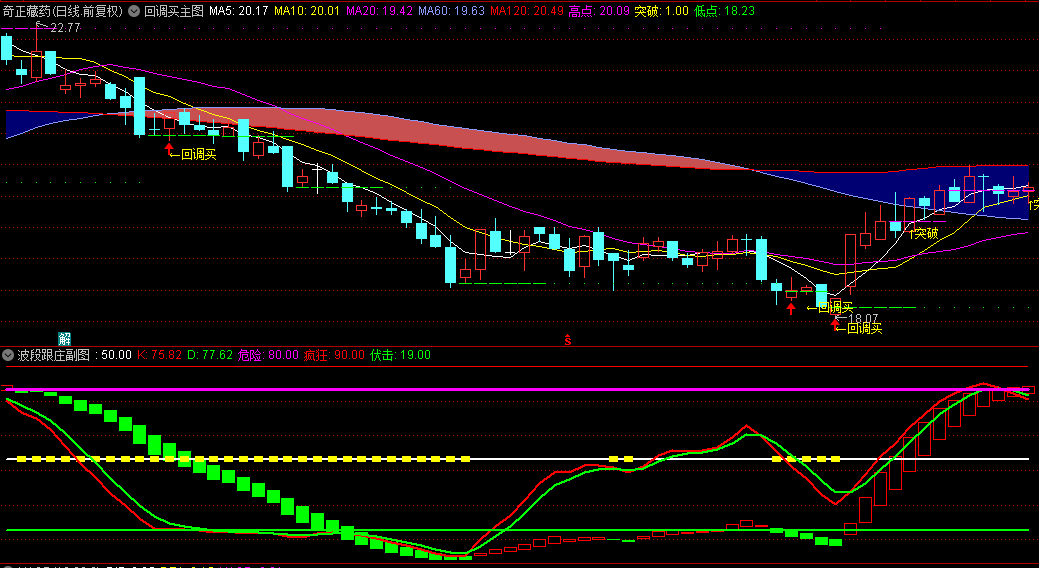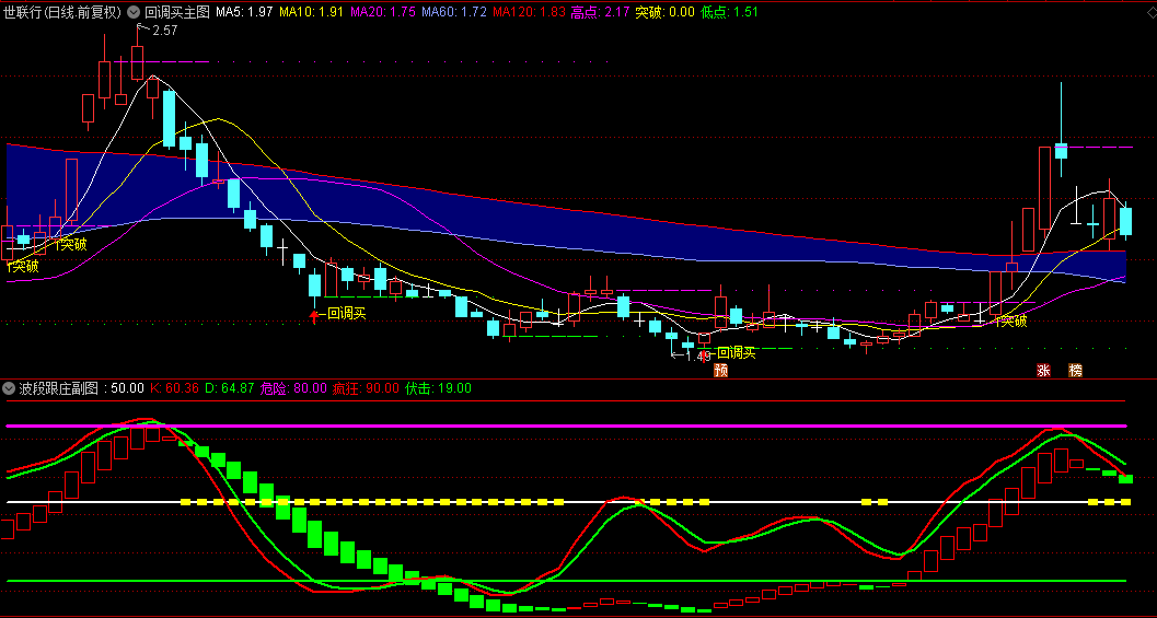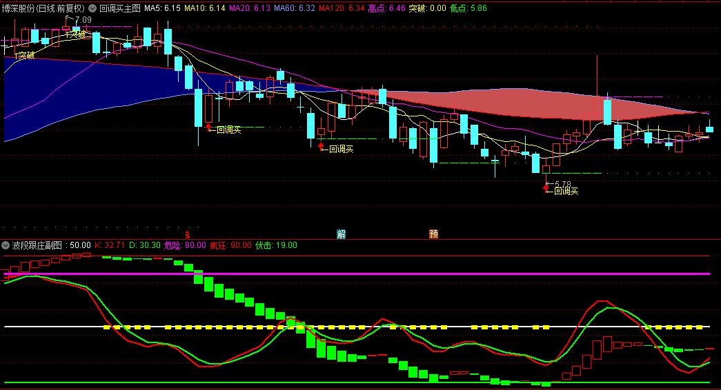 我一次发两个指标【波段跟庄】副图和【回调买】主图指标,两个指标放到一个文件内!