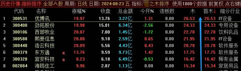 4、首木信号,意思是当日以涨停的首版股,筛选出最具潜力的涨停板!