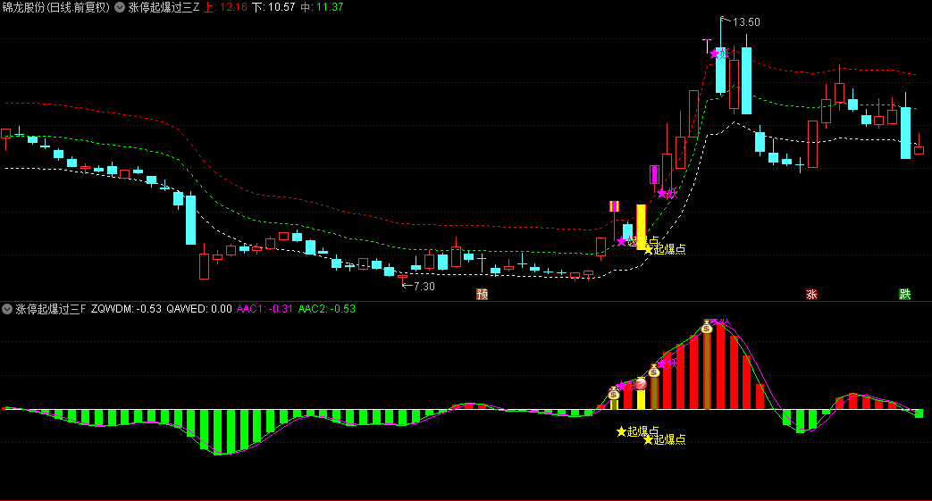 4、本套指标包含主图幅图和选股,选股指标是选出标记“起爆点”位置的信号。