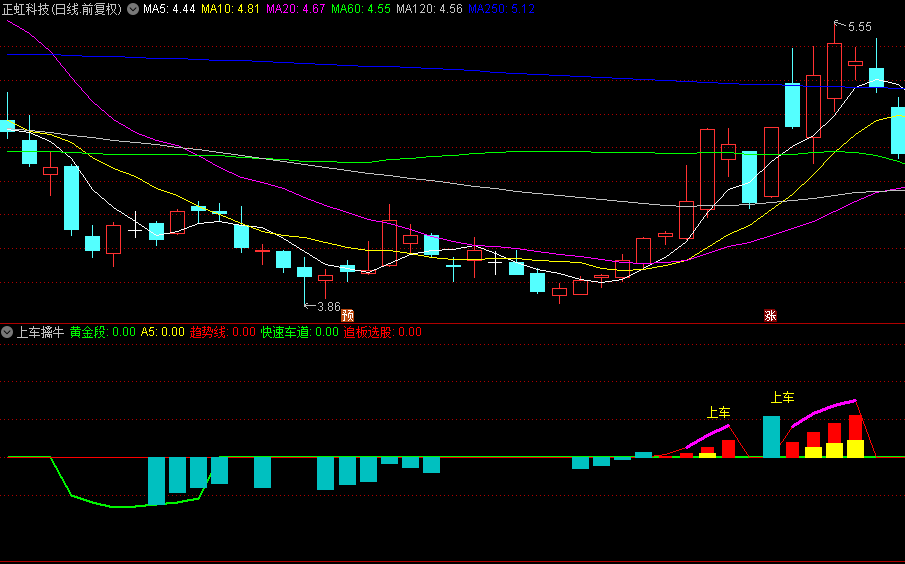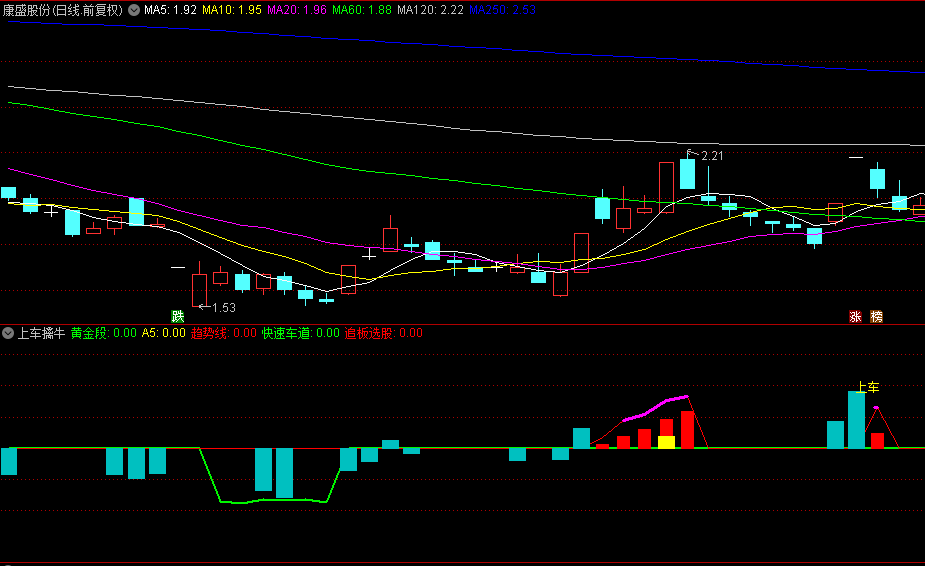 【上车擒牛】优化版副图指标,自己优化过的版本,提高了准确度和美观度,抓牛股的起涨点!