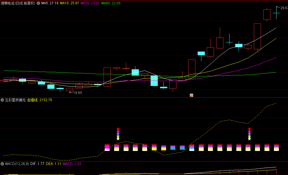 5、双剑合璧,精选龙头妖股:本套指标集副图分析与选股功能于一身,其选股策略尤为独到,专注于捕捉那些同时闪耀五颗星辉的个股。然而,值得注意的是,对于已累积过高涨幅的个股,应保持谨慎,避免盲目追高,确保投资的稳健与安全。