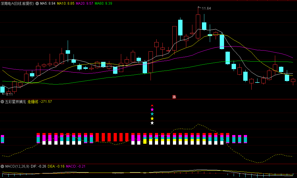 3、五彩连环,激进布局号角:若五种不同颜色的柱体连续登台,形成一幅绚丽的五彩画卷,这无疑是市场极度活跃或重大变革的强烈预兆。此时,投资者应展现出更加激进的姿态,敢于重仓乃至满仓出击,紧紧把握住这稍纵即逝的市场盛宴。