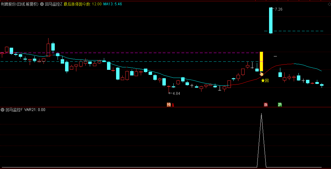 【回马监控】主图/副图/选股指标,涨停板回头再度起涨点,附带选股器,源码!