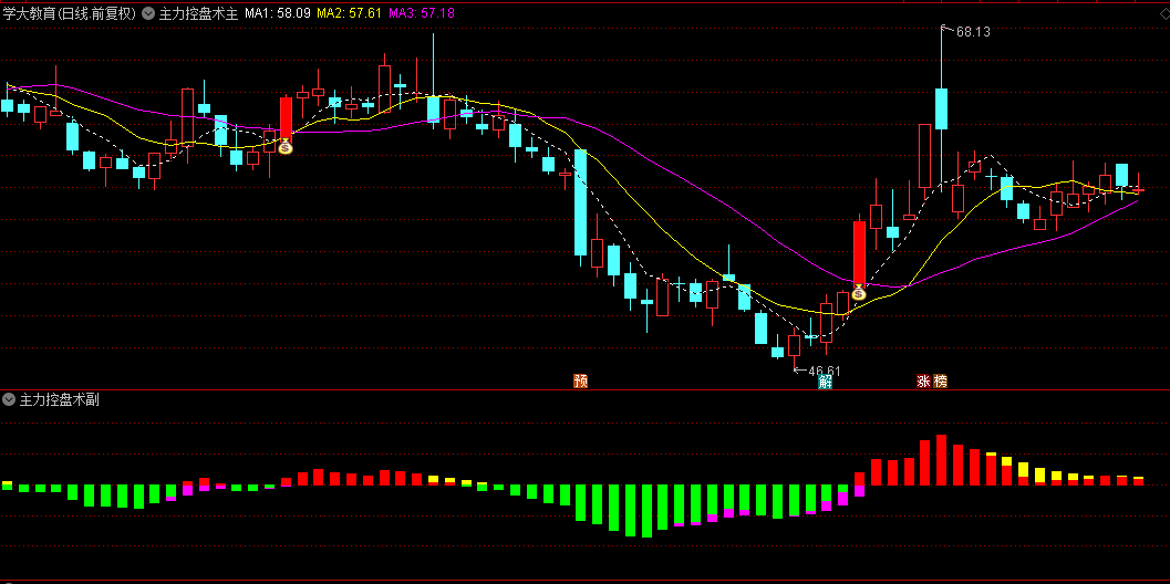 【主力控盘术】指标,一主一副,主力做多+趋势多头共振产生信号,无未来!