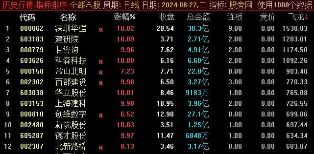 【飞龙连板竞价排序】副图指标,主要用于沪深A股排序,飞龙数值越强越好!