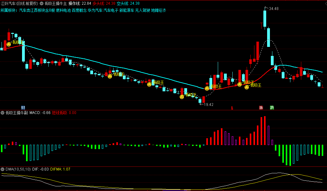 2、强化买入信号:“笑脸低吸王”标志于主图红K与副图红柱同步显现时诞生,此信号经精心筛选条件强化,选股时尤为可靠。
