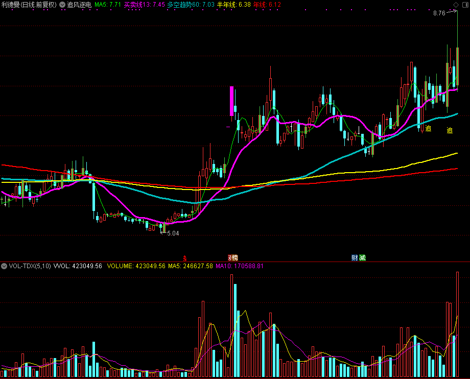 DRAWTEXT(A4A>0 OR A3A>0,L-0.3,'追'),COLORYELLOW,LINETHICK5;