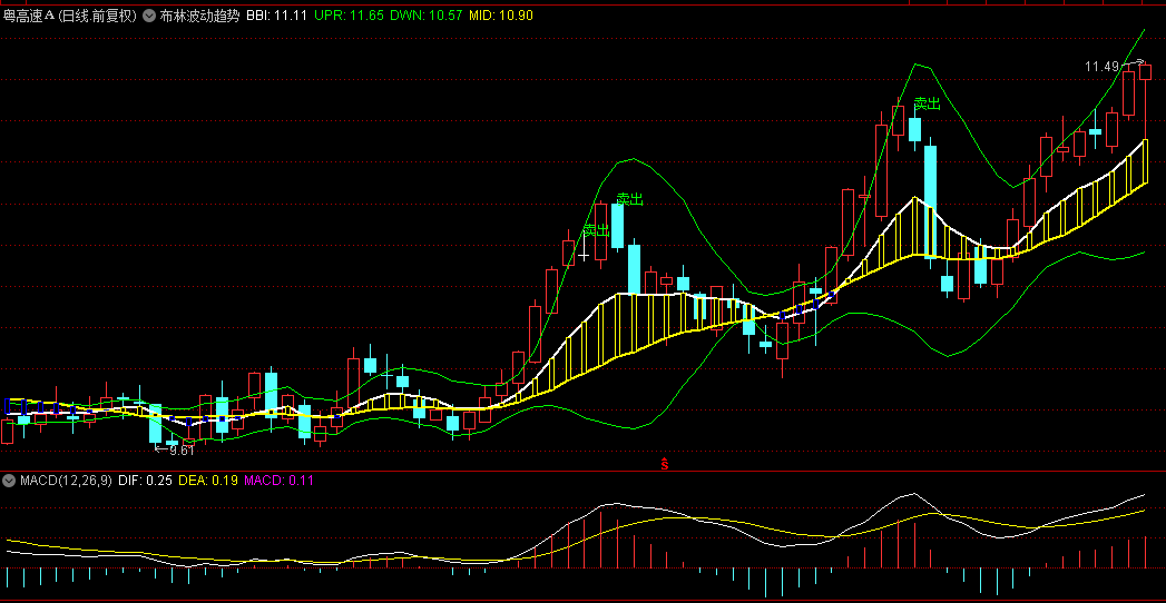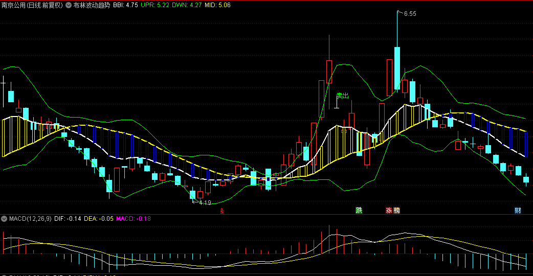 布林通道内的K线舞动:K线柱在布林通道内的行为模式,是趋势强弱的直观反映。