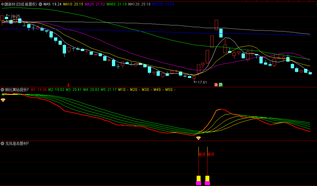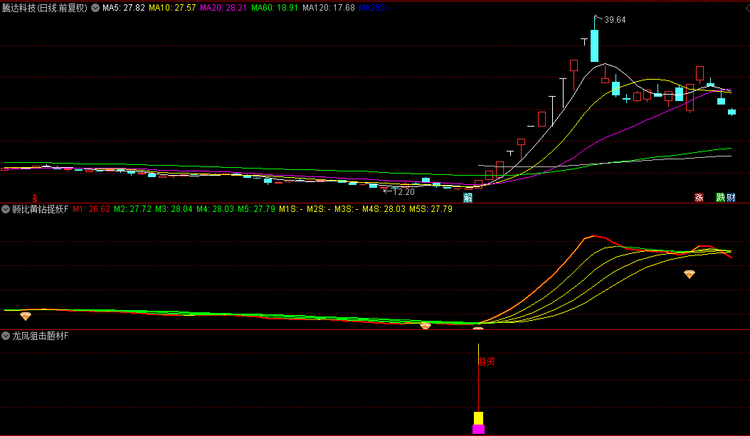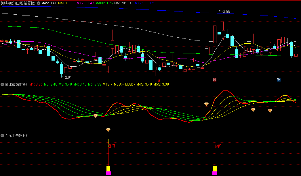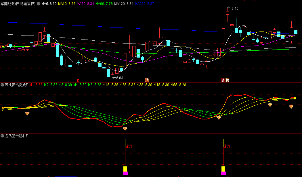 看图说话。龙凤狙击题材F副图+顾比黄钻捉妖F副图,两个副图配合,深圳华强、长白山、金龙汽车等妖股都能入网,不信你下来试试!无未来函数!