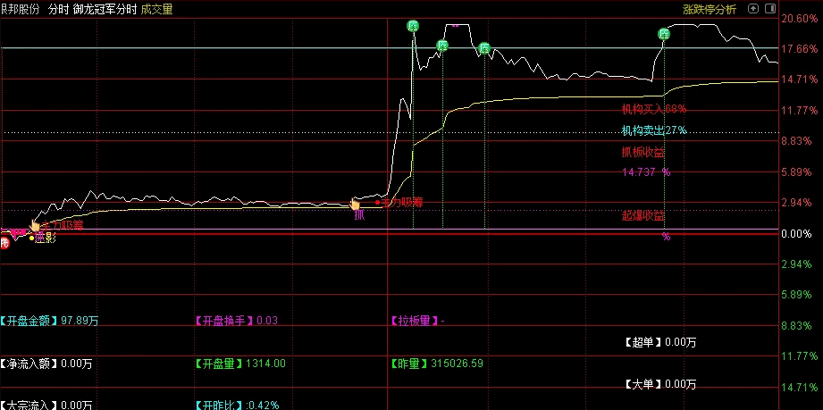 原价几W的【御龙冠军分时】主图指标,经过特别优化,综合多种辅助算法,形成全面分时分析体系!