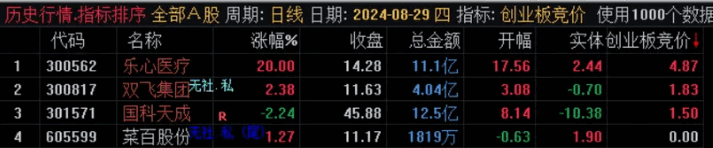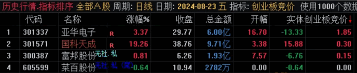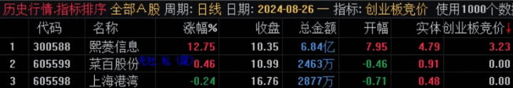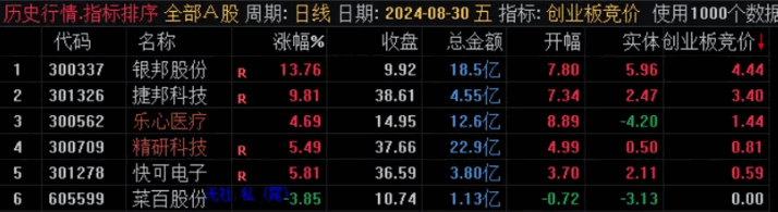 【创业板专用竞价】副图排序指标,只用于创业板,早上9:25分钟出结果,全天不变,不可回测!