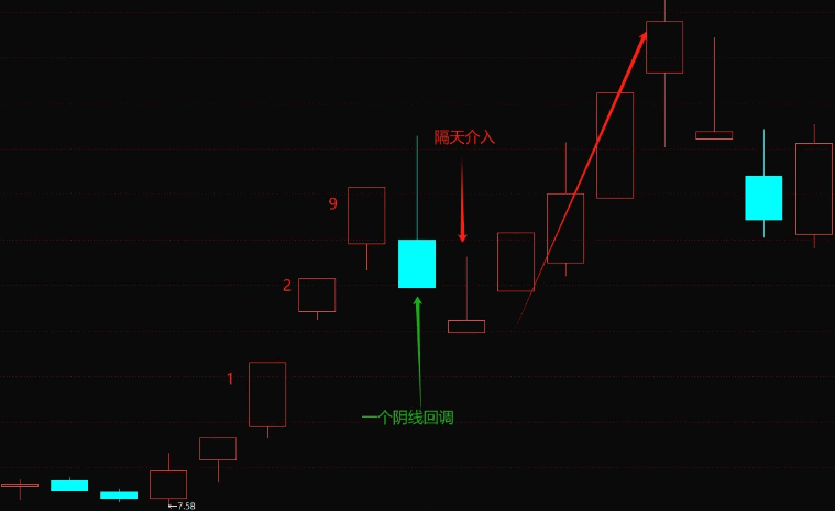 回调:连板之后,出现大幅回调,最好是阴线回调。