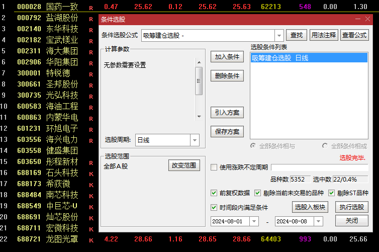 公式类型:1个副图、1个选股。
