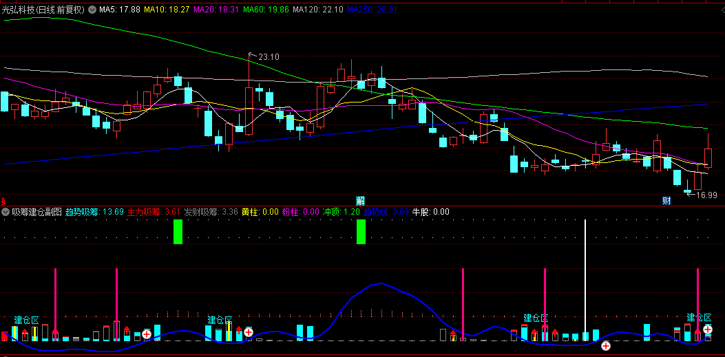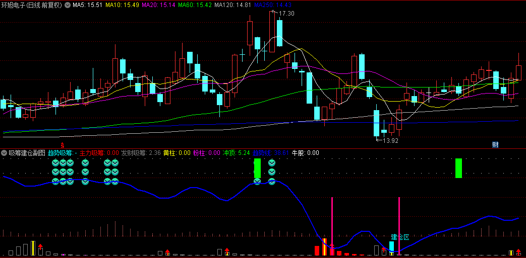 2、以上单信号出现可轻仓建仓,如果2个信号同时出现为强烈信号,直接满仓干。