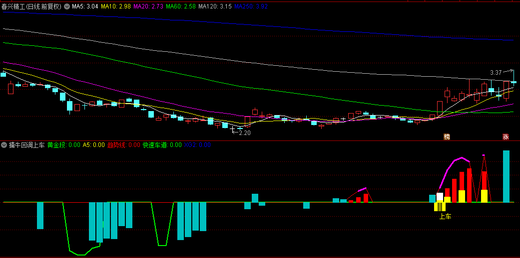 低吸【擒牛回调上车】修正版副图/选股指标,买在右侧起涨拐点,抓在牛股起涨点,开盘绿盘低吸思路!
