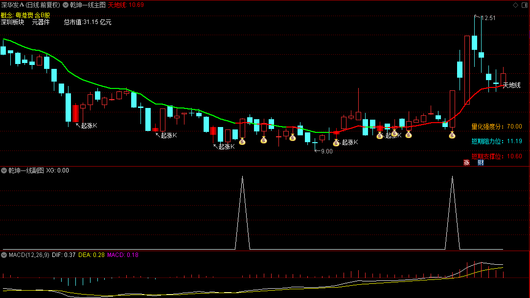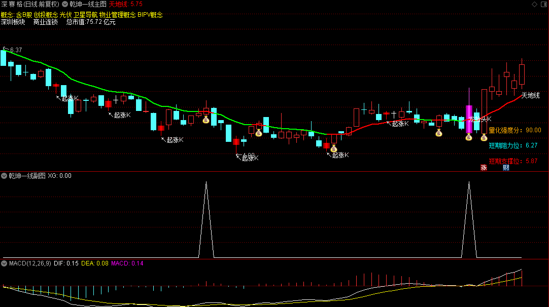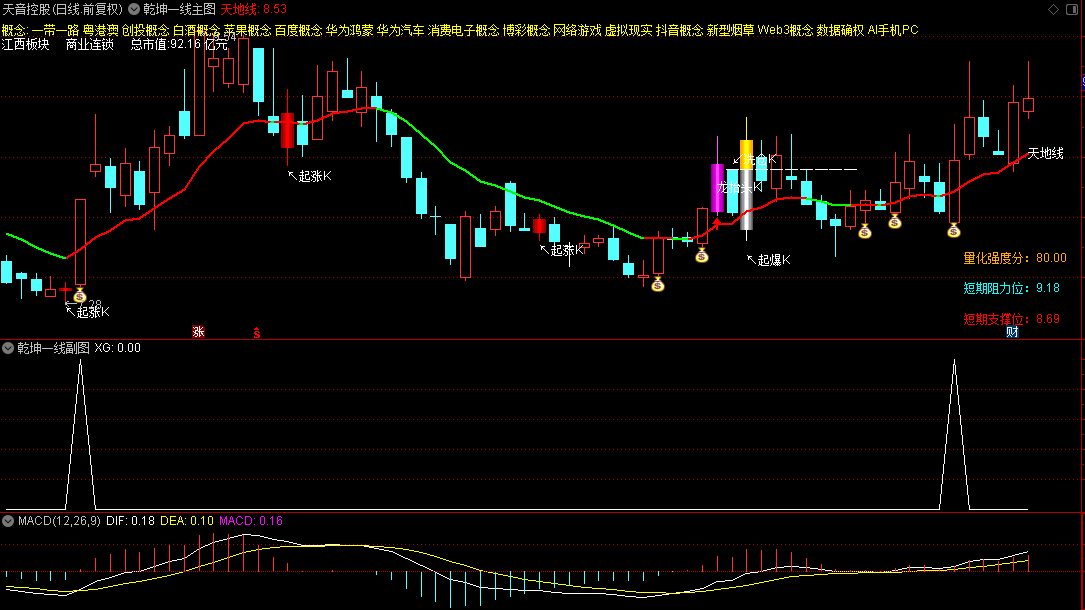 【乾坤一线】主图/副图/选股指标,钱袋一出,妖股即成!起爆k是加仓信号,手机通用!
