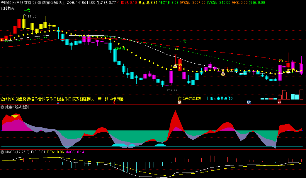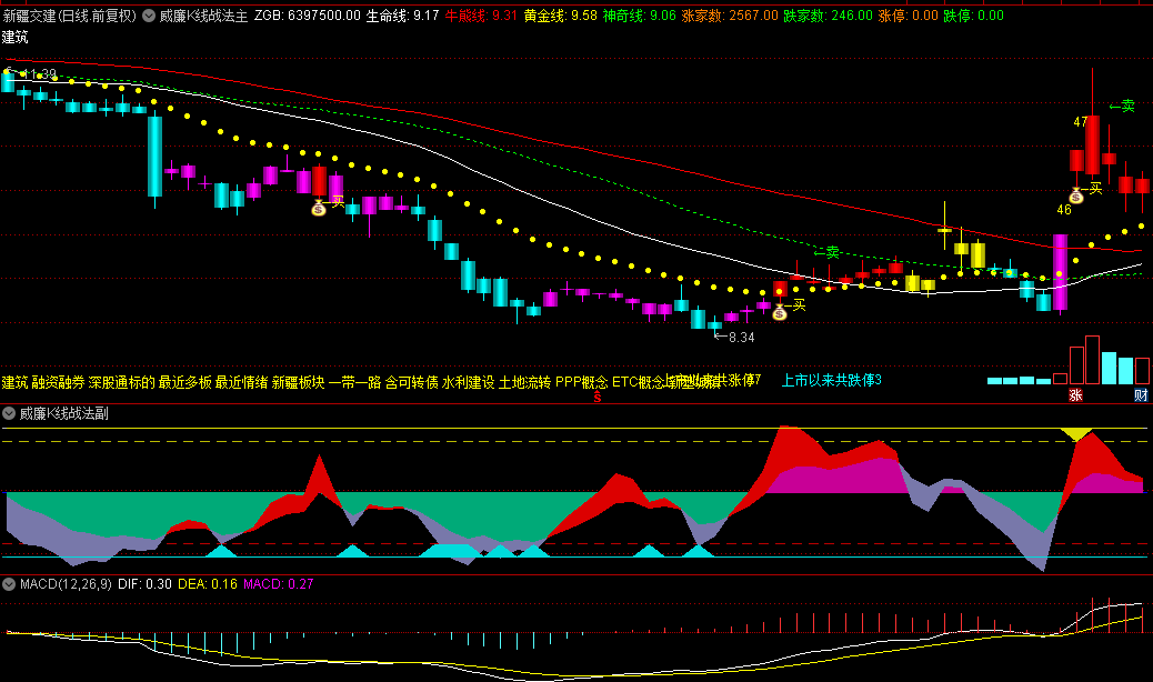 【威廉K线战法】作为一款集大成者的主副图选股指标,巧妙地将K线战法的深邃、KDJ指标的敏锐、威廉信号的灵动以及成交量的生命力融为一体,为投资者开辟了一条全新的分析路径。该指标体系中,白色生命线稳健依托30MA,红色牛熊分界线清晰划定60MA,而神秘的43MA则作为趋势指引的神奇线,更增设了买卖信号提示,辅以实时涨跌停家数、热门板块题材速递及个股解禁日预警等实用信息,让决策更加全面而精准。