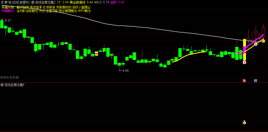 “+”与“笑脸”的双重加持:如果说“财富之袋”是短线龙腾的精髓所在,那么主图中的“+”与“笑脸”信号便是其不可或缺的左膀右臂。
