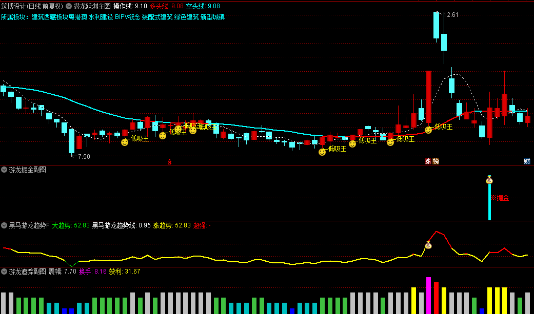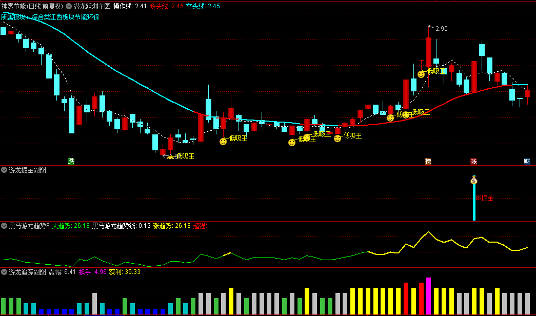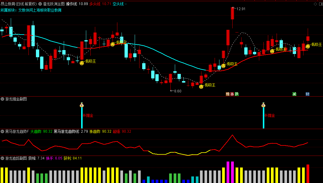 【潜龙跃渊】主图+【游龙追踪】副图/选股指标,低吸掘金潜力个股套装,附详细用法说明!