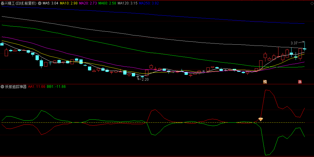 特别设计的“黄钻”图标,在此刻更显其重要性。它标记的是那些前一天红色线虽已穿透零轴,但并未立即引爆涨停板的微妙时刻。然而,次日若该股以涨停之姿惊艳亮相,这不仅是对前一日上穿零轴自然趋势的肯定,更是后续加速上涨的直接信号。此刻,黄钻闪耀之处,往往预示着妖股启动的序幕已经拉开,次日即是入场布局的绝佳时机。