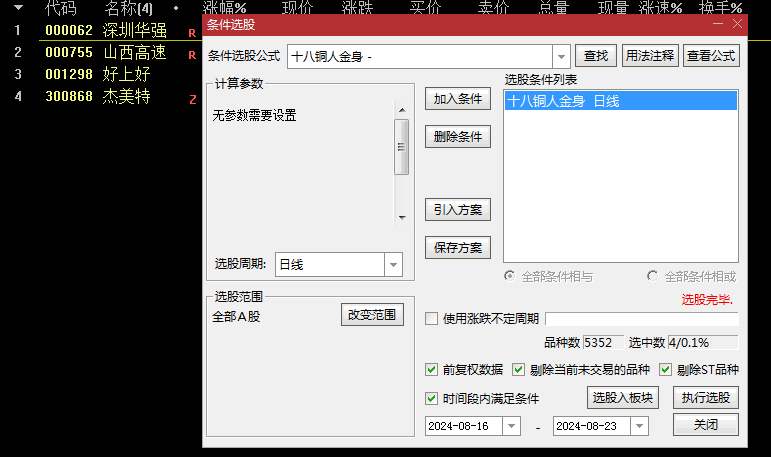 本套指标包含幅图和选股,选股是选出铜人位置的信号,选股信号少而精;