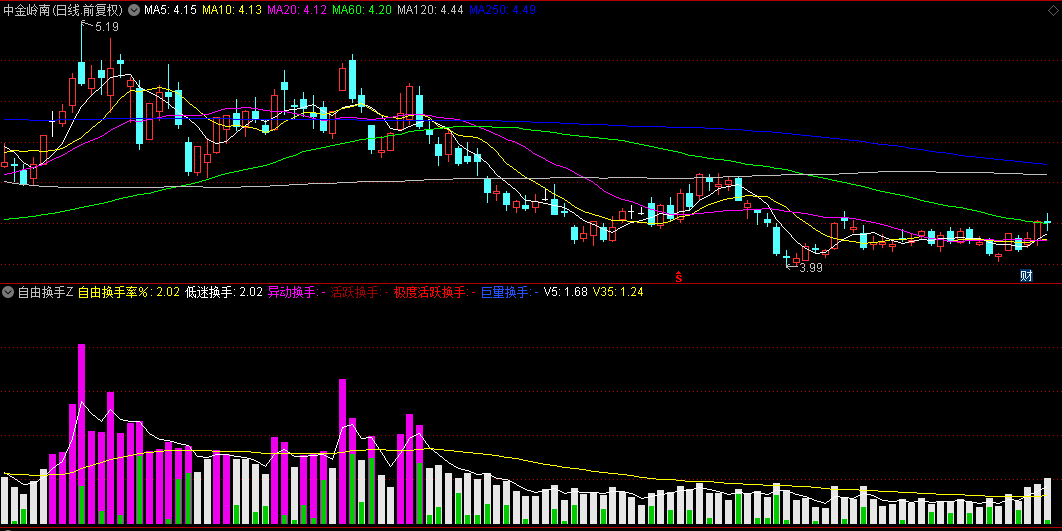 图中的白色柱子,代表低迷换手,换手z很小,当长时间连续的低迷换手之后,出现异动换手甚至是活跃换手,代表股价开始进入活跃期,一旦突破了活跃期,那么就是妖股启动的主升浪;