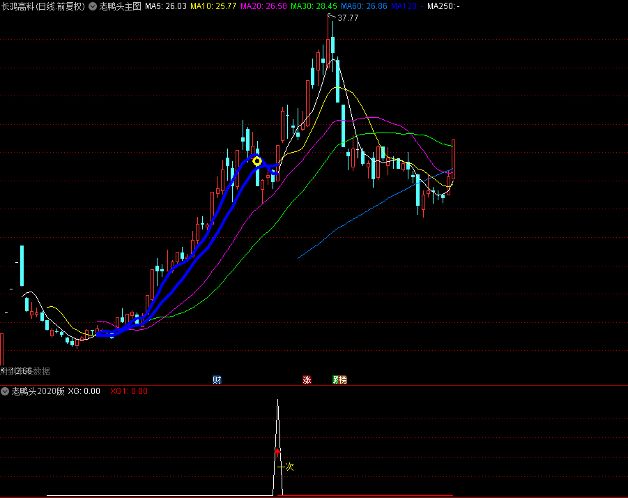 (1)三张嘴买点:K线中大阳突破鸭顶、并且配合明显放量、并且MACD0轴以上强势金叉。