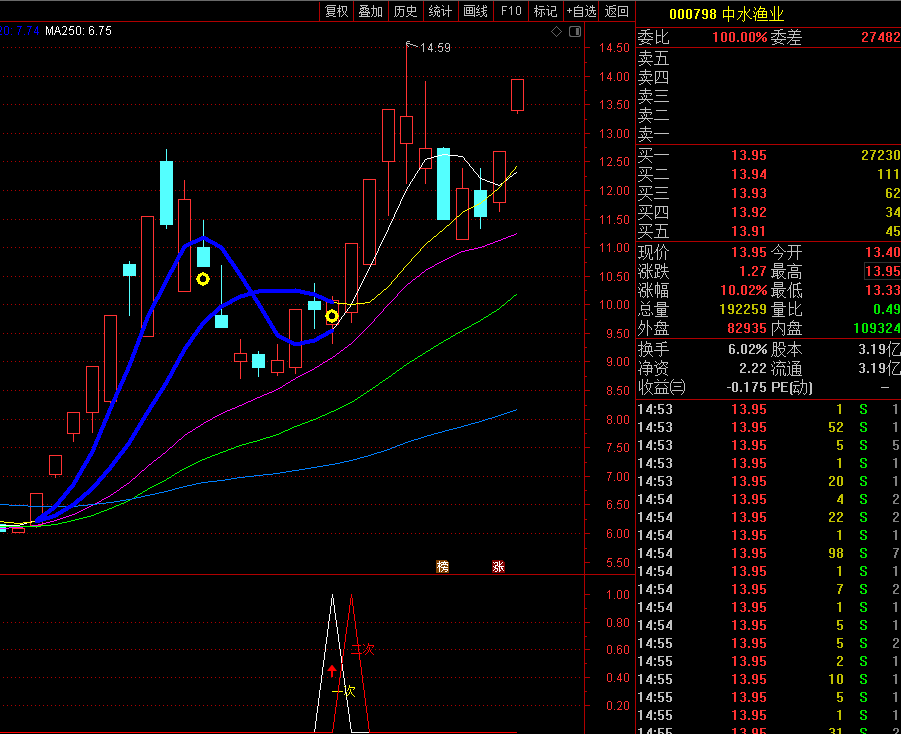 3、鸭嘴通畅性要好,均线最好呈多头排列,不出现大幅多条均线同时交叉。